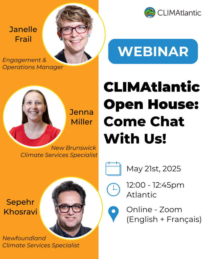 At this webinar, team members from our friendly and engaging staff will give an introduction to our organization and then we’ll open up the floor to questions about our services, tools, and climate adaptation work in Atlantic Canada.
