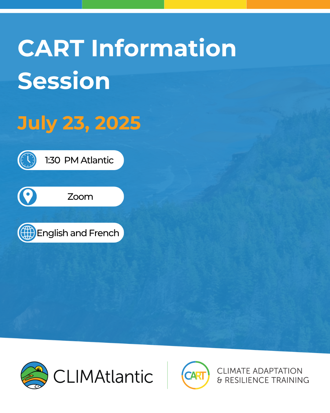 In our final part of the Adaptation Essentials series, we will explore the different tools and services CLIMAtlantic offers that can advance your adaptation efforts. Learn more about our Coastal Adaptation Toolkit (CAT), Climate Adaptation and Resilience Training (CART), Networking Map, Adaptation Library, and other free resources available to you! Presented by our team members Amanda Marlin (Training & Learning Manager), Armin Nikkhah (Science & Data Lead), and Jenna Miller (NB Climate Services Specialist).