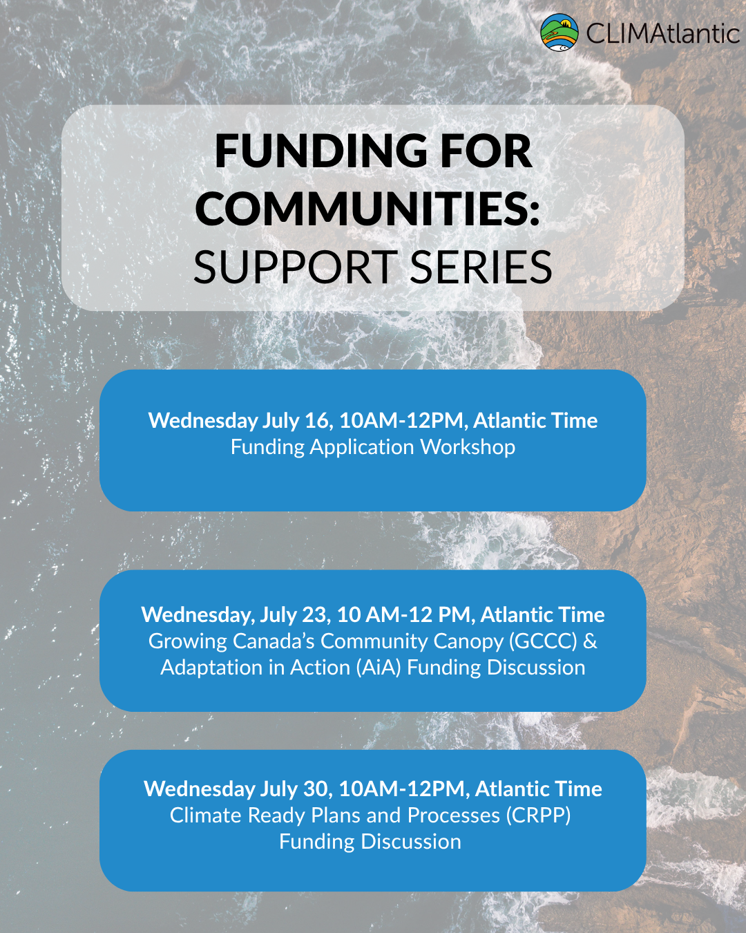 We are partnering with the Federation of Canadian Municipalities (FCM) and various provincial funders to host a three part series on how communities can access funds for adaptation in the Atlantic region.